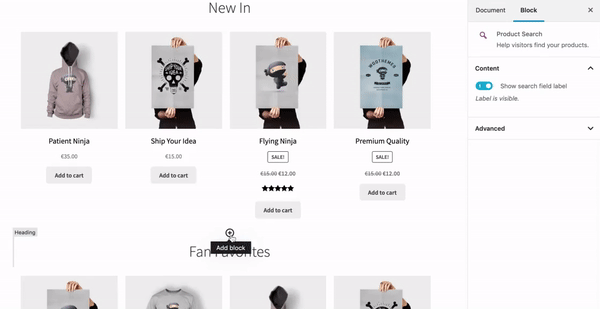 這些塊已被新增到塊編輯器中的 WooCommerce 下以電子商務為中心的集合中,該塊自 5.0 以來一直是 WordPress 的一部分,又名 Gutenberg 。